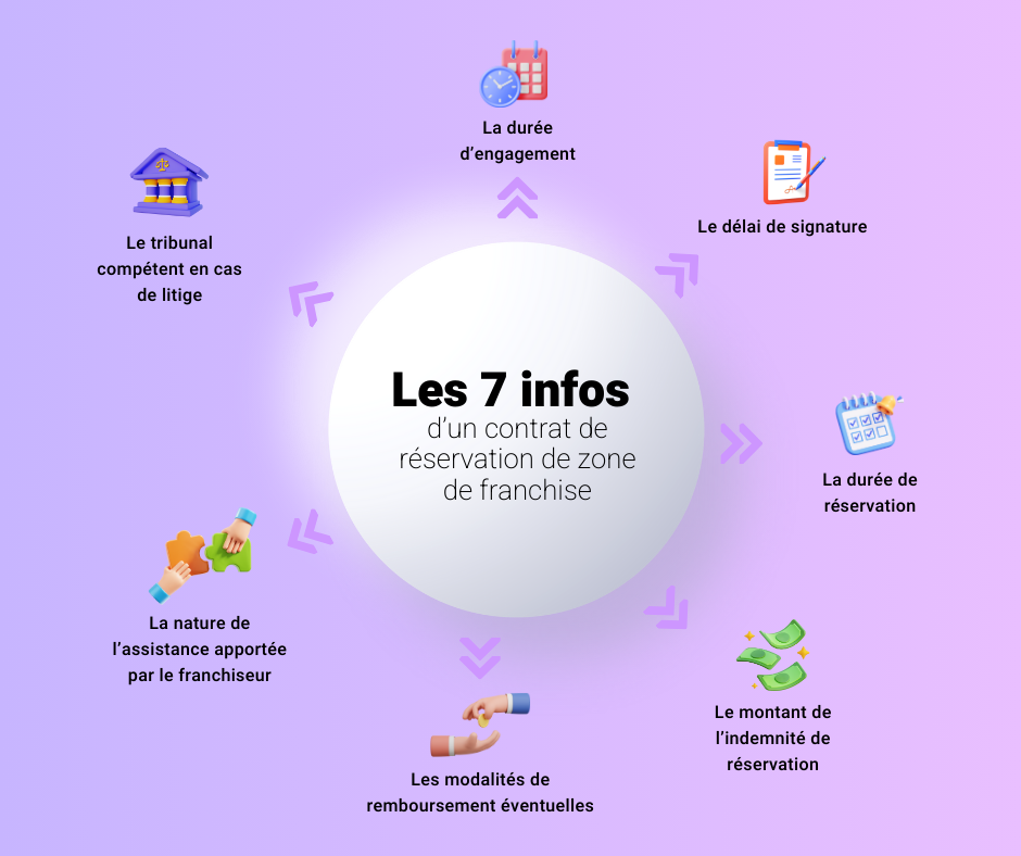 Si vous souhaitez mettre en place un contrat de réservation de zone de franchise, voici les 7 informations à faire apparaître :